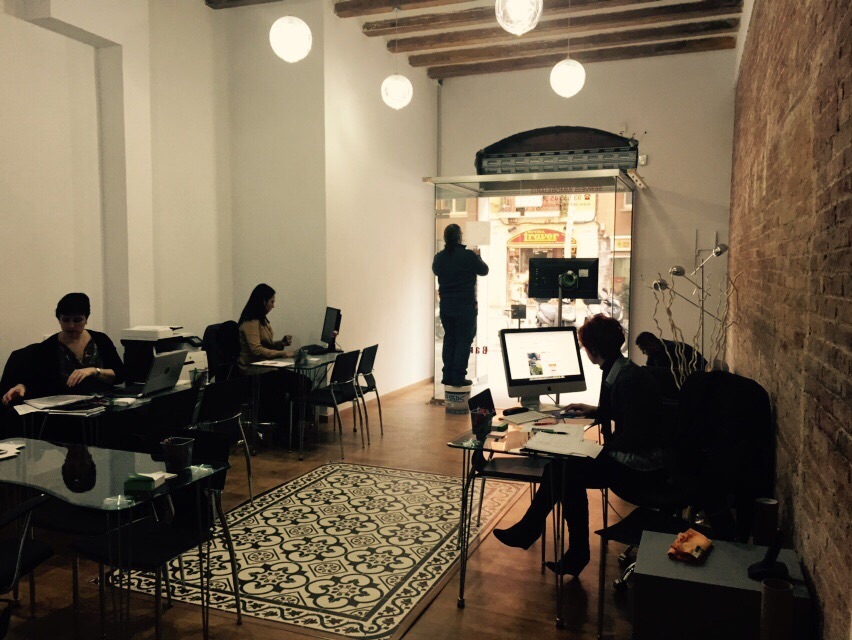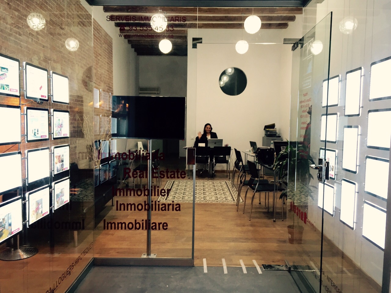 Inmobarceló , una immobiliària amb la que tinc el plaer de col·laborar, està especialitzada en Poblenou i per tant necessitava una seu on es respirés el «manchester català». Per a això vàrem descobrir els elements característics de l’època, vàrem mostrar les bigues de fusta, vàrem desvestir la paret de maó i vàrem col·locar una catifa central que recorda el paviment hidràulic de l’època. Aquestes peces es van combinar amb un mobiliari modern i elegant i una cuidada il·luminació perquè els clients se sentin com a casa.