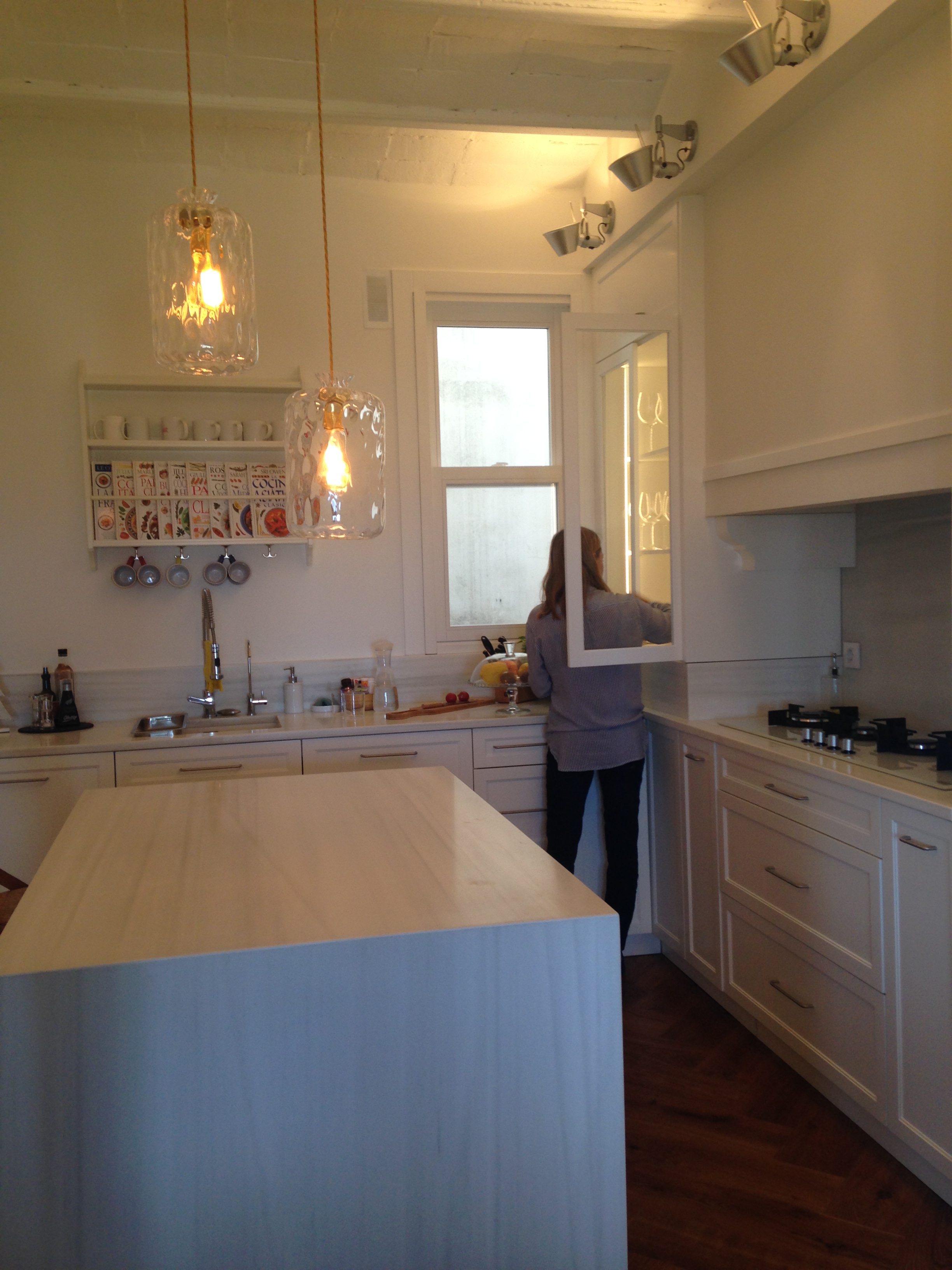 Finalment la cuina, també dissenyada especialment per a aquest projecte, segueix la mateixa línia que la resta de l’habitatge, amb una gran illa central de marbre i una bonica llar de foc d’obra. Terres de fusta natural col·locats en espiga, finestres de fusta i volta catalana recuperada i pintada de blanc al sostre, completen el conjunt.