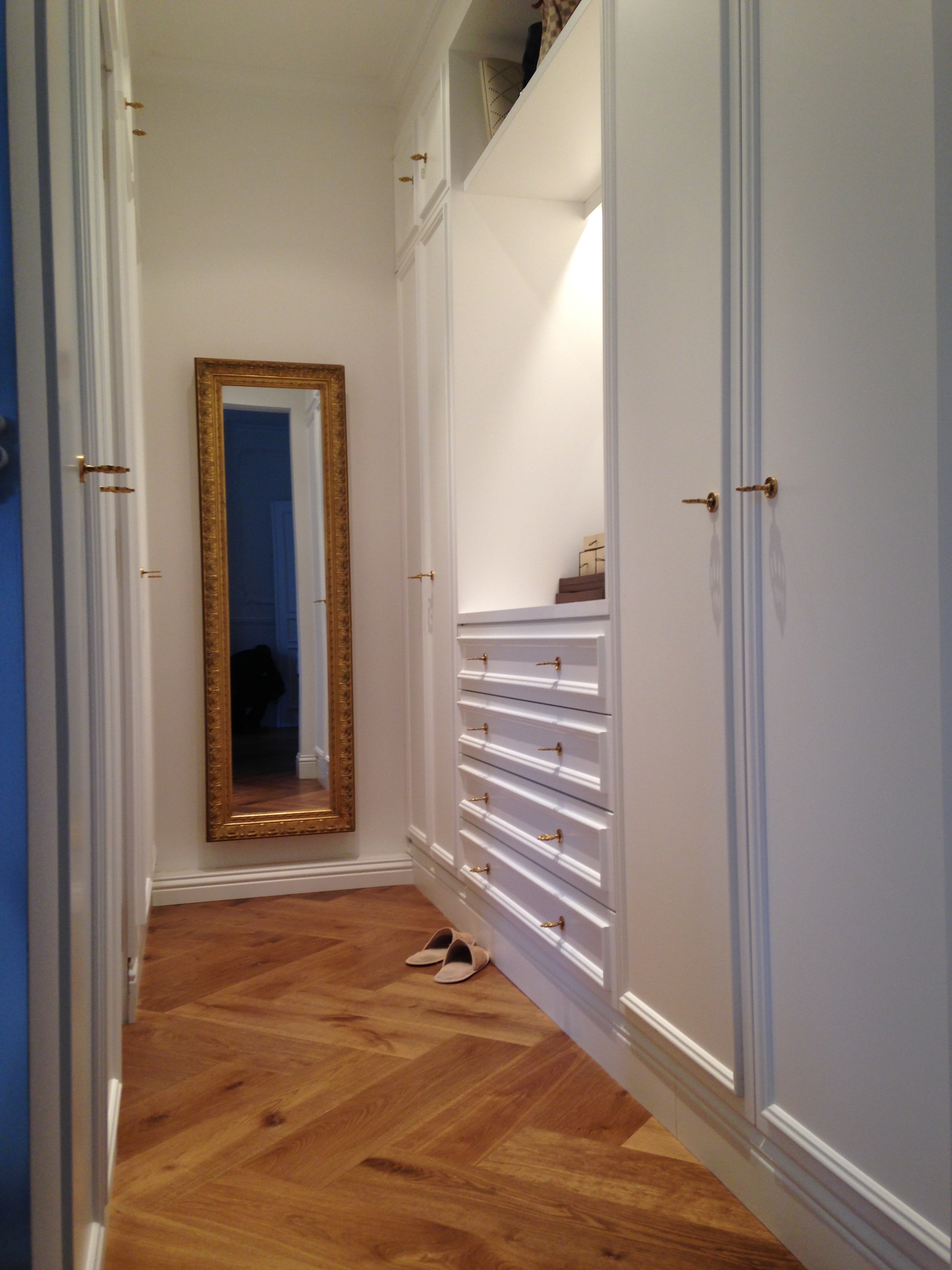 A l’habitació, col·loquem un seguit de motllures vestint l’habitació i col·loquem un cortinero amb doble capa i tira de led integrada ja que no podíem posar persianes. A banda i banda del llit, unes meravelloses llums d’EBB & FLOW.