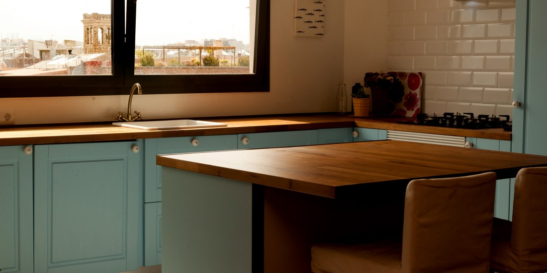 La distribución casi no se cambió, simplemente se juntaron estancias (que no tenían luz ni ventilación) para dotar, a la habitación principal de un vestidor, hacer llegar la luz al despacho con un gran ventanal y juntar la sala comedor con la cocina derribando una pared de carga. El cambio más impactante fue al sustituir tres pequeñas ventanas de fachada posterior, por un gran ventanal. Este ventanal, que muy probablemente en su origen ya existía, escondía mucha luz natural y unas maravillosas vistas del mar y las torres Mapfre pero sobre todo, unas cautivadoras puestas de sol.