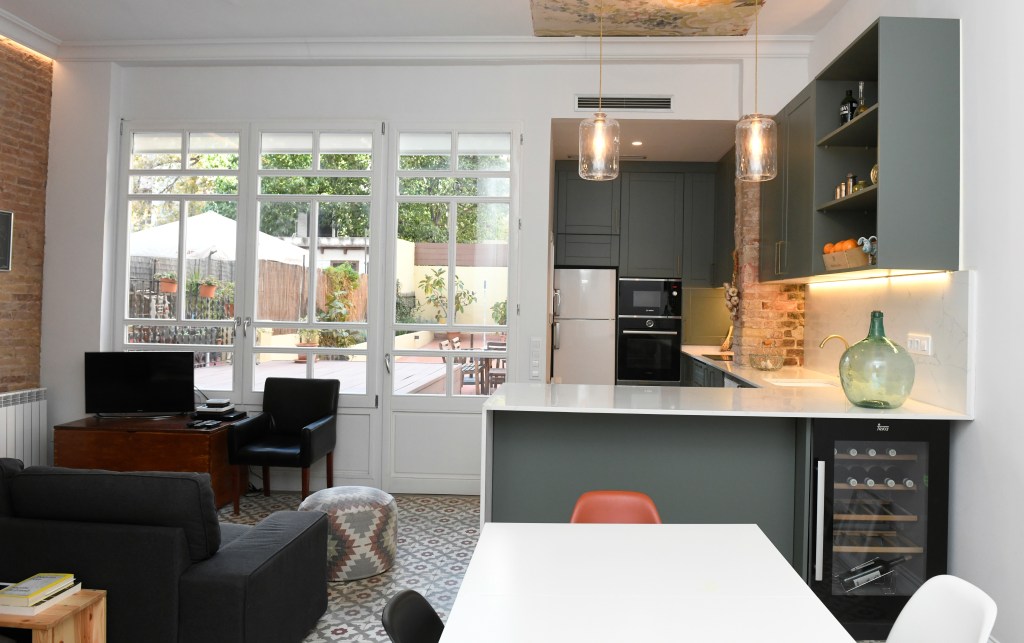 Un altre canvi important va ser l’obertura de la cuina a la sala menjador, que junt amb el nou finestral, va multiplicar la llum d’aquesta ultima estança. Amb la nova distribució també es va crear una habitació i un bany complert extra.