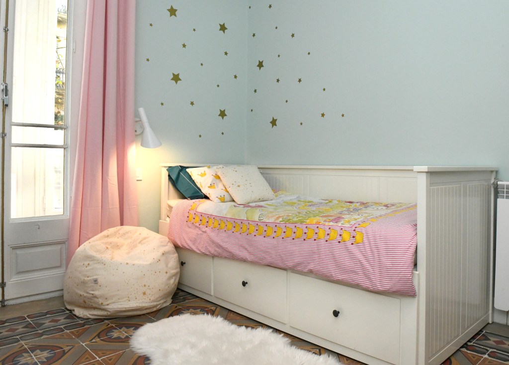 I així va ser, vàrem desmuntar totes les finestres de fusta originals i les vàrem portar a taller per a col·locar doble vidre, decapar, tornar a pintar i arreglar alguns engranatges i elements que estaven en mal estat. D’aquesta forma també vàrem recuperar la tribuna de façana principal, un espai que estava totalment en desús per el fred i el soroll que, amb el doble vidre va permetre convertir en l’estudi dels nens de la casa, un lloc idoni per aquesta funció donat la gran quantitat de llum natural que tenia.