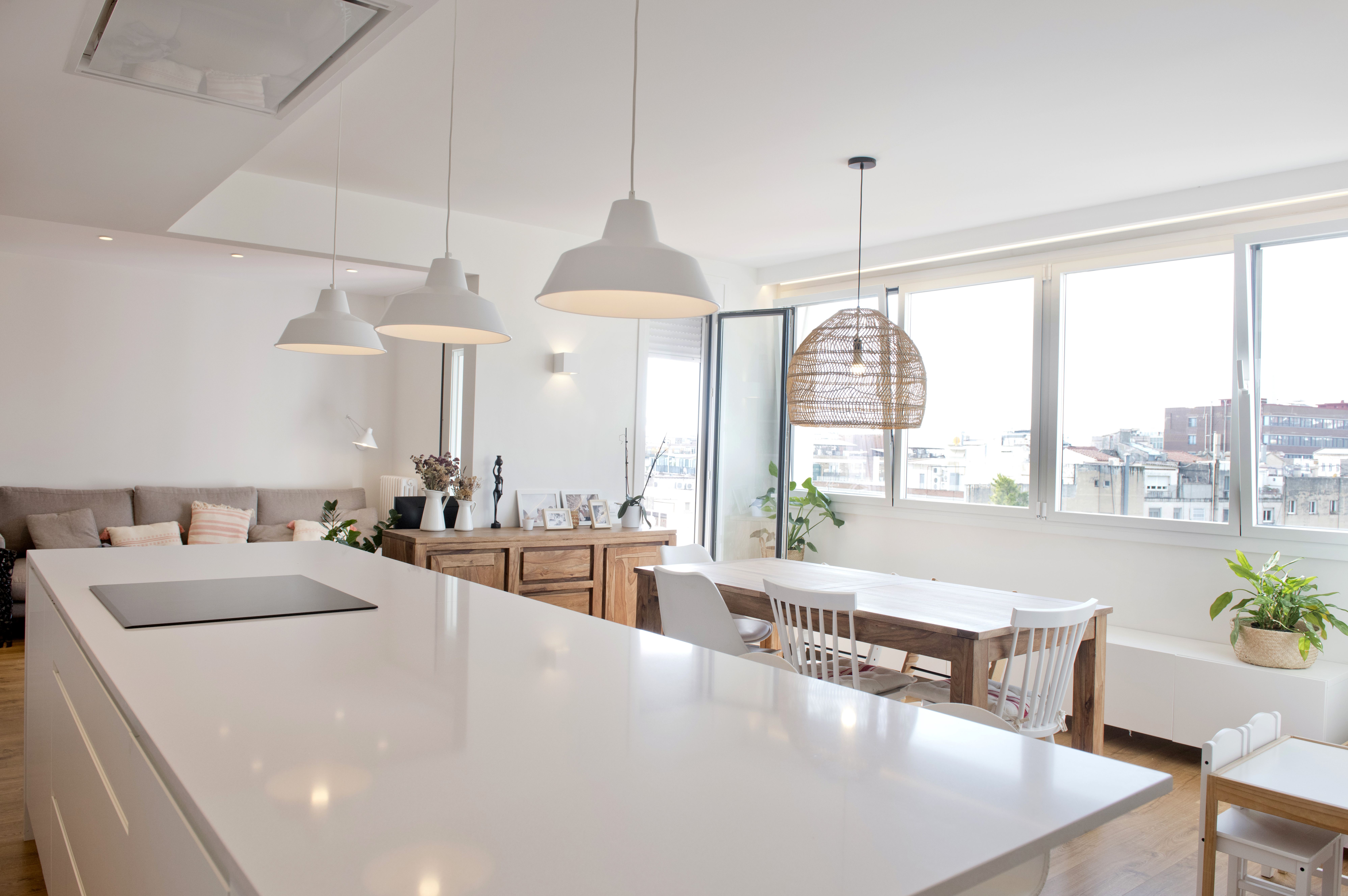 Un cop obtingut el permís de la comunitat de veïns, es varen crear tres grans estintolaments i es va redistribuir l’habitatge per a aconseguir tres habitacions (una gran suite amb vestidor i bany privat, una habitació per els nens i un despatx que en un futur es pogués convertir en una segona habitació), un segon bany, un rebedor, un traster, un safareig i un balcó. La resta de l’espai es convertia en una gran zona comú amb sala d’estar menjador, cuina oberta i zona de jocs infantil connectada amb la