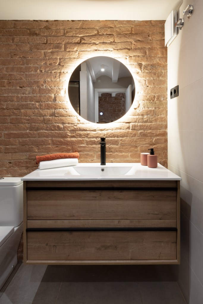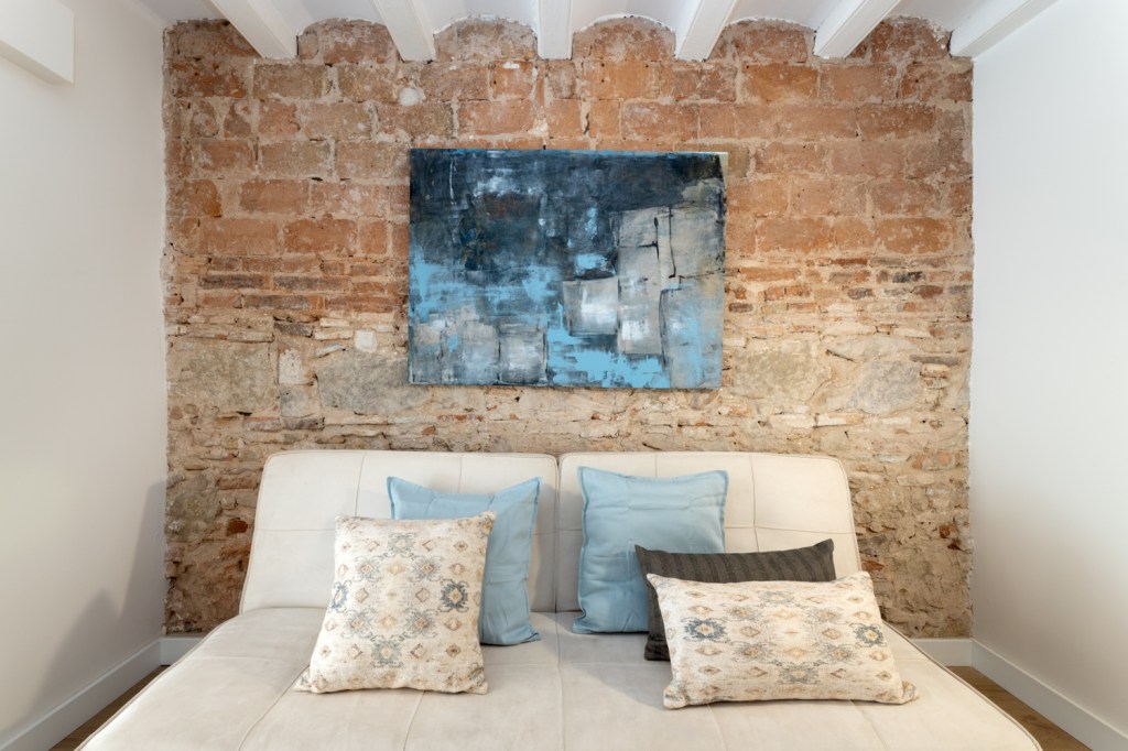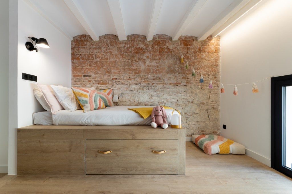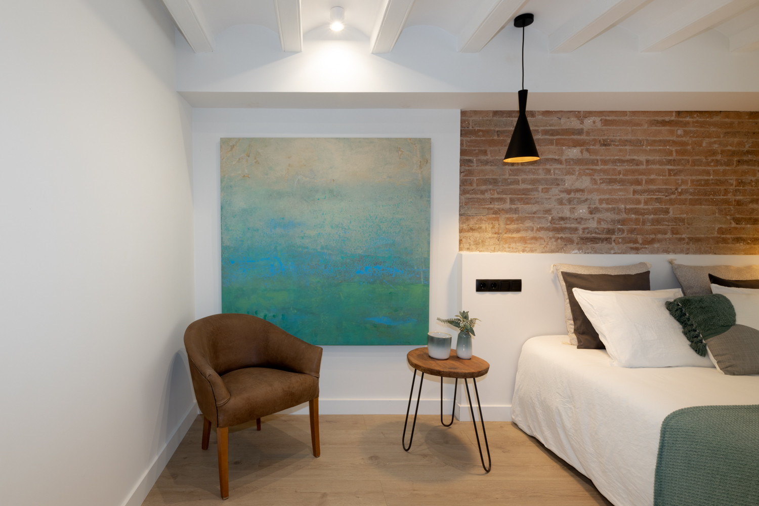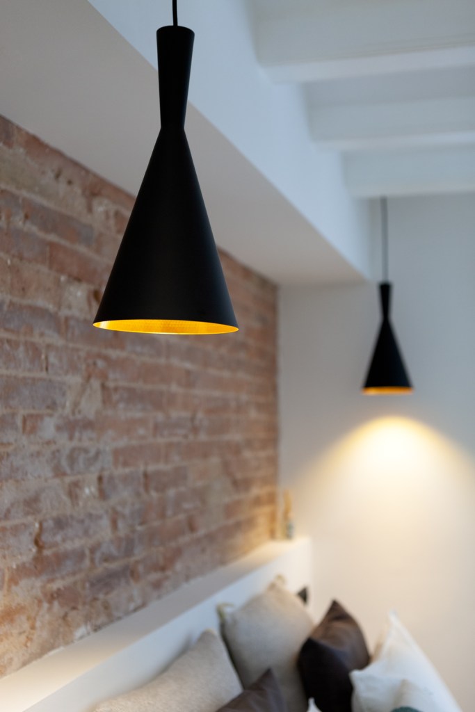 El diseño busca una clara línea por los materiales industriales como el hormigón, el hierro y la madera que se potencian con el ladrillo visto y las paredes de mampostería centenarias originales del edificio, así como las vigas de madera vistas. Los cuadros de studio42bcn destacan y dan personalidad al conjunto creando un espacio que a pocos les deja indiferentes.