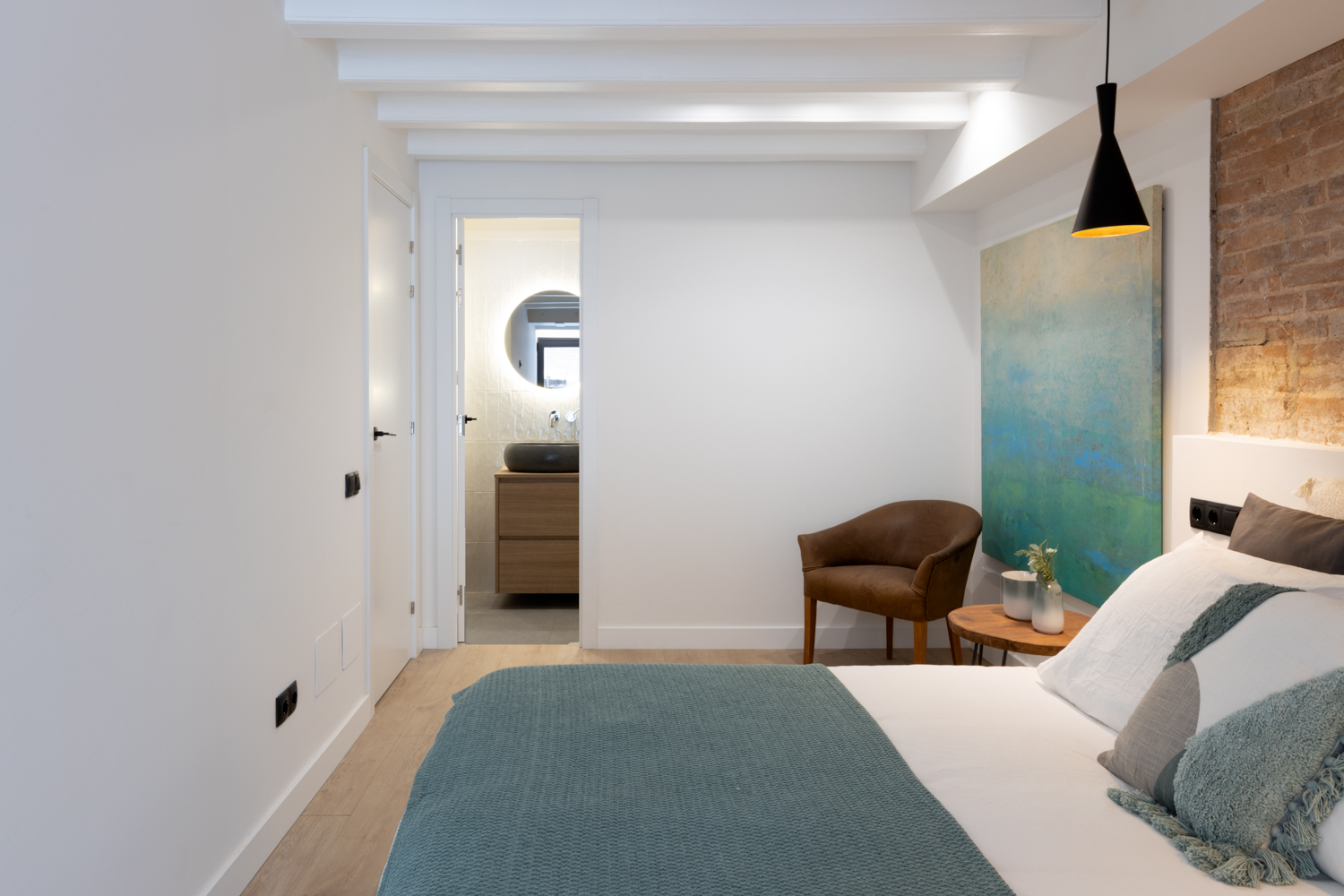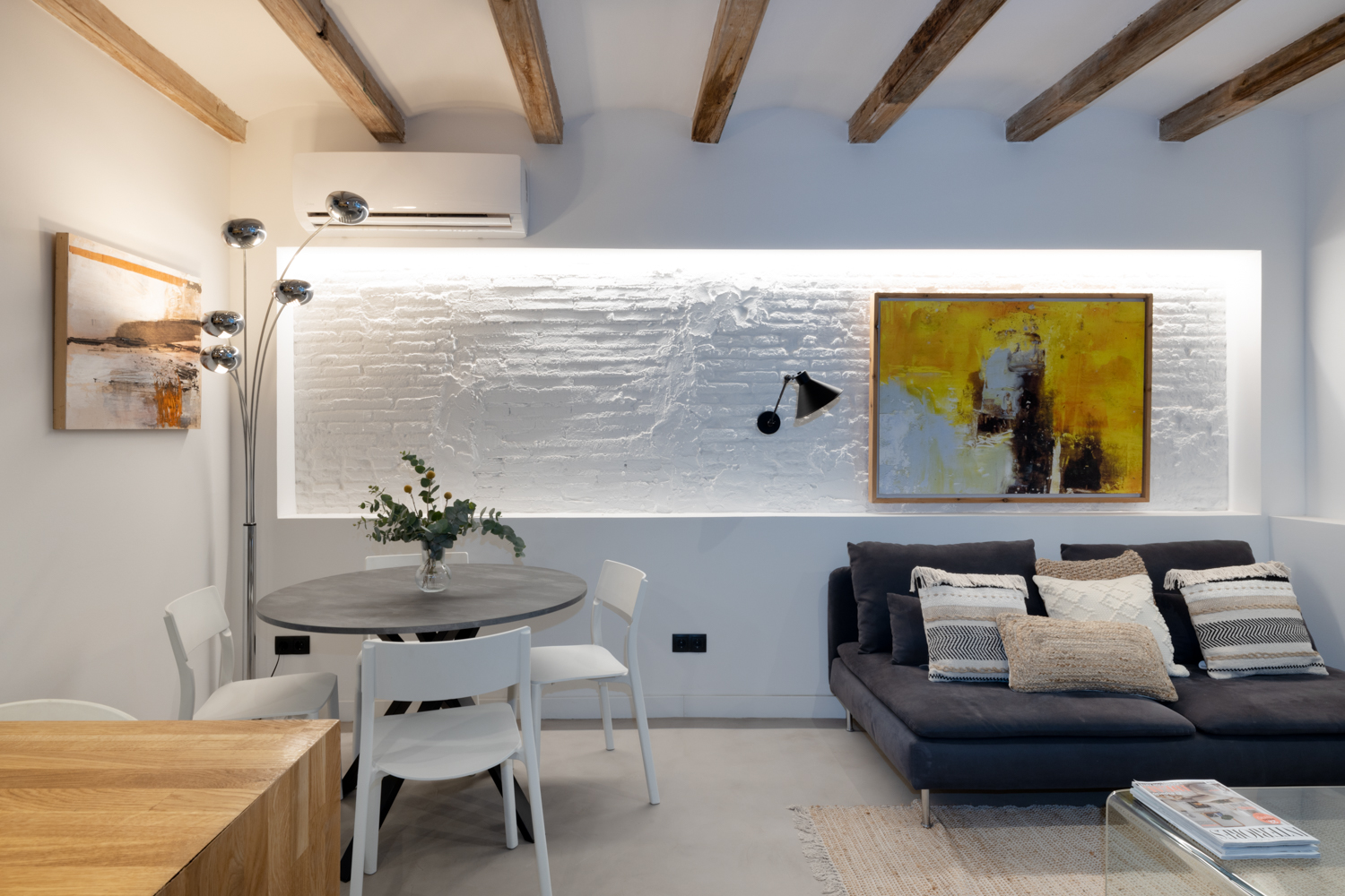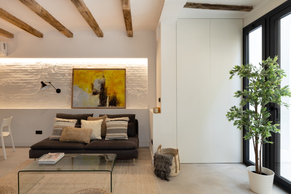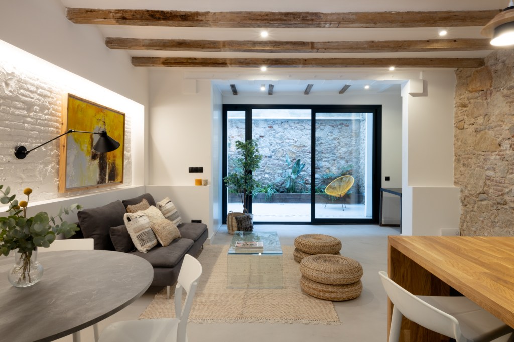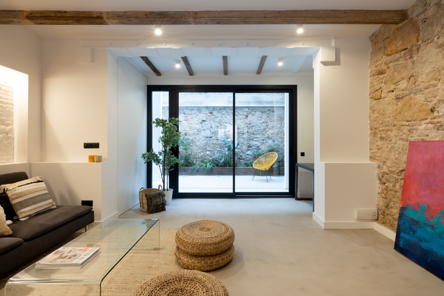 Se crean las máximas aberturas con vistas al patio que se potencia con un jardín tropical a través del apeo de fachada posterior ya que originalmente contaba con dos pequeñas aperturas como es típico en este tipo de construcciones de Poblenou. Proyecto en colaboración con la Arquitecta Mar Hortal.