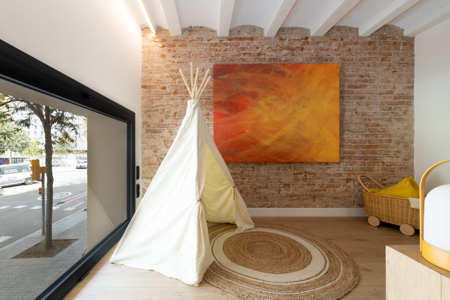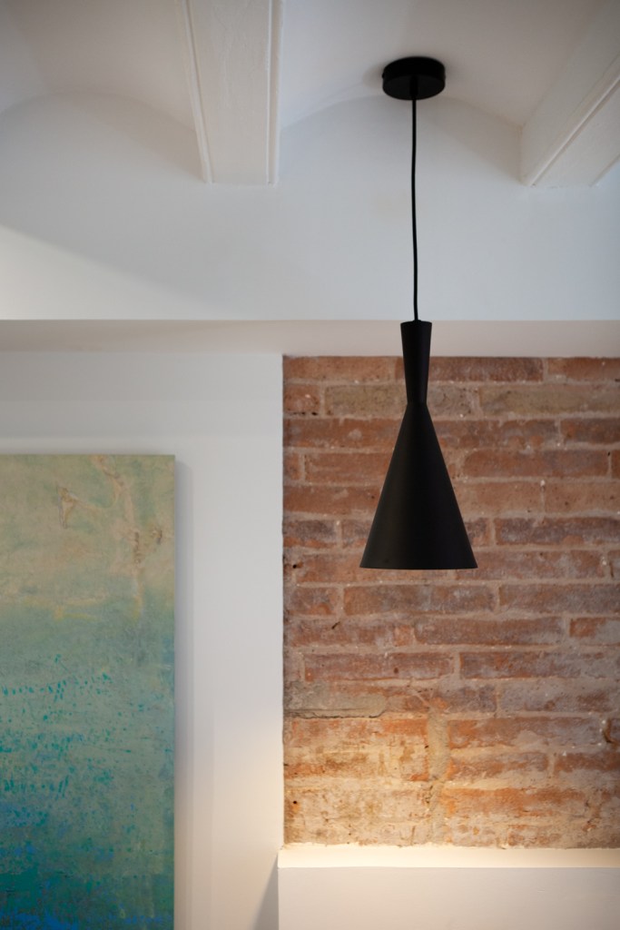 El disseny cerca una clara línia pels materials industrials com el formigó, el ferro i la fusta que es potencien amb el maó vist i les parets de maçoneria centenàries originals de l’edifici, així com les bigues de fusta vistes. Els quadres de studio42bcn destaquen i donen personalitat al conjunt creant un espai que a pocs els deixa indiferents.