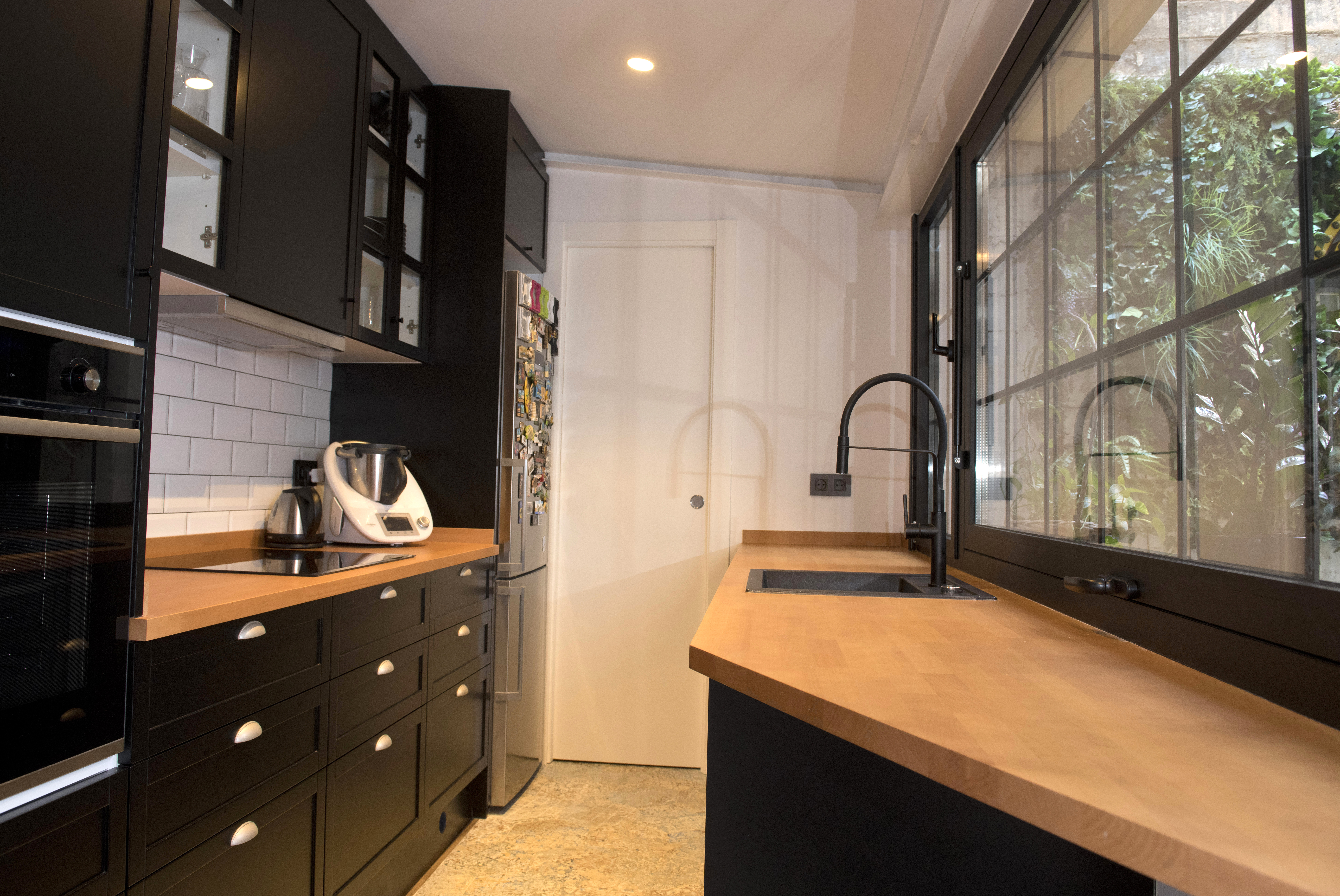 Aquest habitatge, amb accés directe des del carrer, pati posterior i soterrani, portava molts anys en desús però presentava un alt potencial arquitectònic. La intervenció es va orientar a una reforma integral per transformar-lo en un espai tipus loft, pensat per a una parella sense fills que buscava una llar versàtil, amb caràcter propi i una entrada generosa de llum natural. El projecte prescindeix d’habitacions tancades per potenciar la continuïtat visual i la flexibilitat d’ús.